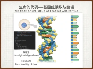 Online talk about The Code of life, Genome Reading and Editing for high school students Foon Yew High School in Malaysia, covering DNA technology, genome editing and overseas education for high school students.
